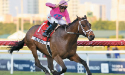 | Taking Wing Mucho Gusto rolls in the Pegasus on his way to the Saudi Cup – by Bob Ehalt